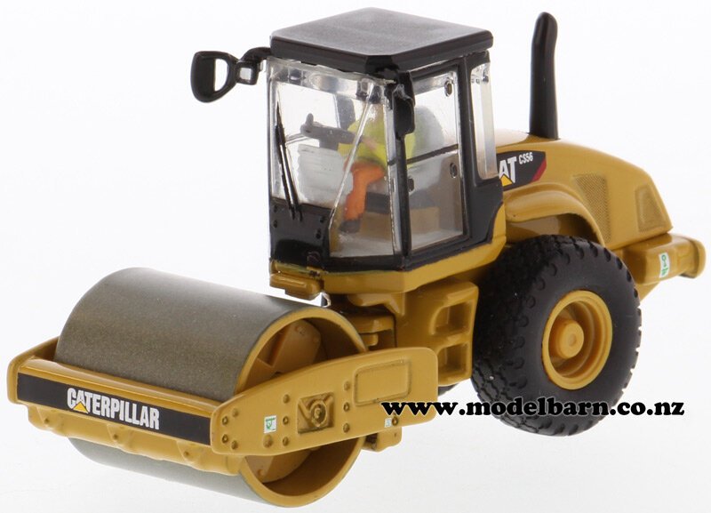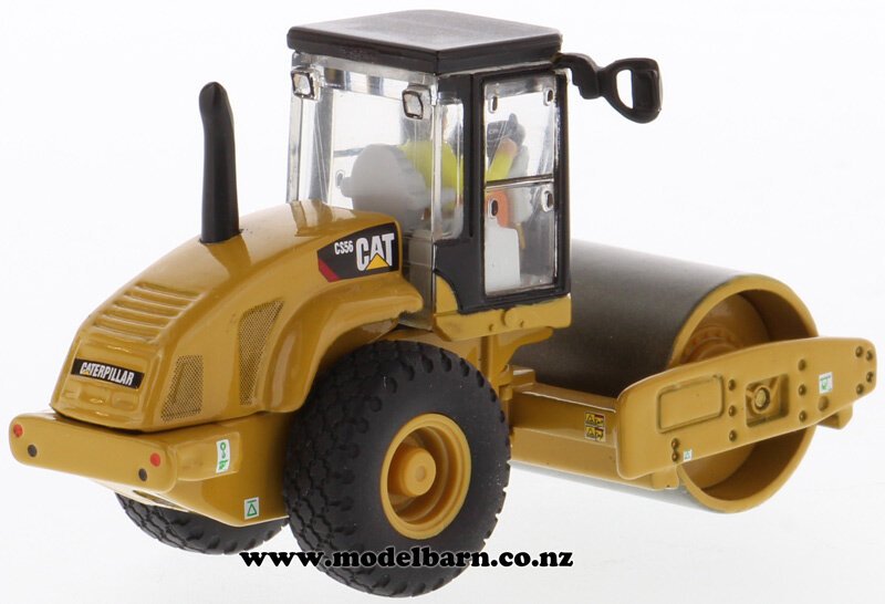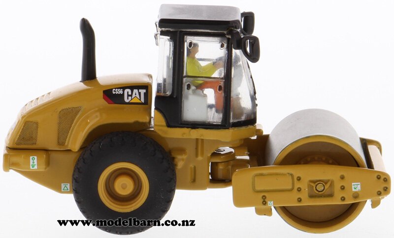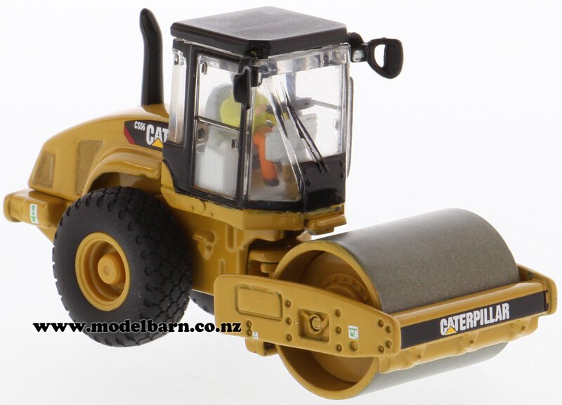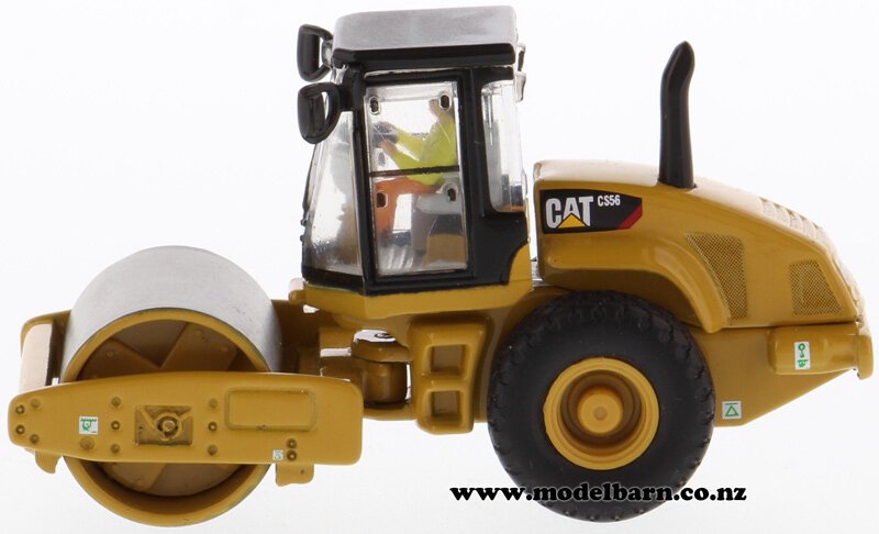1/87 Caterpillar CS56 Articulated Smooth Roller. Made by Diecast Masters as part of their "High Line" series. Features pivot steering, great detail. Comes with operator in the cab. This roller is 67mm long, 26mm wide & 37mm high.This item is not suitable for children.