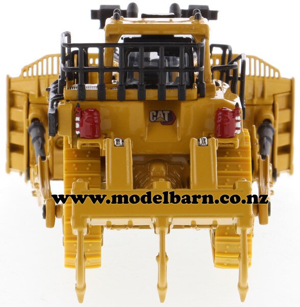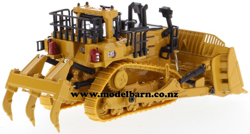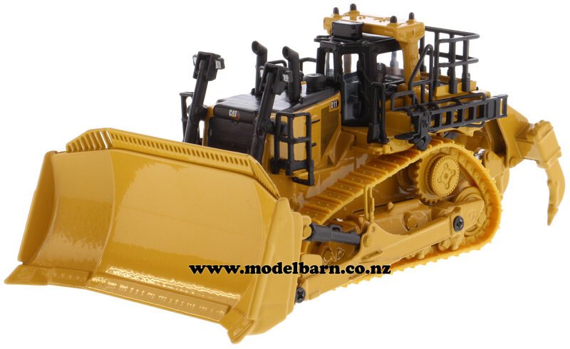 1/87 Caterpillar D11 Bulldozer. Made by Diecast Masters as part of their "High Line" series. Features 11U-blade, rubber tracks, movable blade & ripper. Comes with operator in the cab. This bulldozer is 125mm long, 73mm wide & 54mm high.