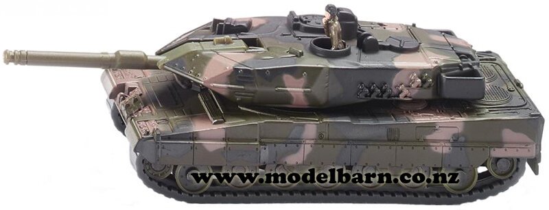 1/87 MAN Heavy Haulage Prime Mover Truck & Low Loader with Leopard 2A4 Tank Set. Made by Siku. Features detachable trailer, lowbed detaches from gooseneck. Tank features rubber tracks, rotating turret. This set is 265mm long, 44mm wide & 48mm high.