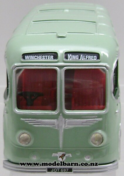 Burlingham Seagull Coach. Made by Corgi in 1993 as part of their "Classic Public Transport" series. Decorated in "King Alfred Motor Services Winchester" livery & features right-hand drive, good detail. This is a used item in very good condition but may have small imperfections. Its box is in good condition but has marks & creases. Only 6000 have been made of this limited edition. Only 1 available. Comes with collector's certificate. the mirrors are included in the package. This bus is 185mm long, 49mm wide & 64mm high.This item is not suitable for children under 8.