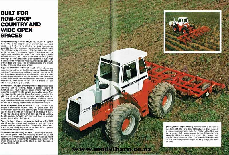 Case 2470 Traction King Tractor Brochure. This is an original sales brochure printed in the United States in 1977. Inside this brochure are specs & photos of Case 2470 tractors working with different implements. It also shows exploded views of the mechanical features & close-ups of the operating features. This is a used item in very good condition but does have some marks, & other small imperfections. Only 1 available. This brochure is 215mm wide & 280mm high & is 24 pages.
