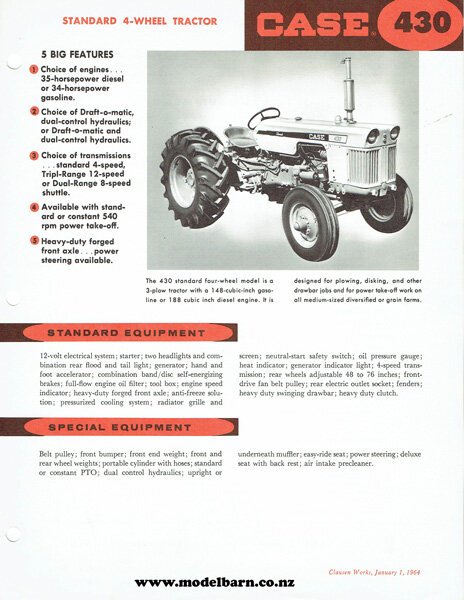 Case 430 Standard Tractor Spec Sheet Brochure 1964