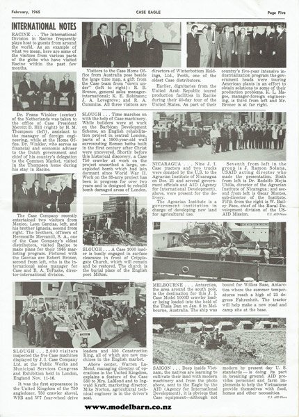 Case Eagle Magazine Supplement February 1965. This is an original Case Eagle Magazine Supplement printed in the United States in 1965. This magazine features articles of interest to Case customers such as event details, social trips, employment awards, visiting dignitaries, & product releases. This is a used item in good condition but does have some marks, creases & other small imperfections. Only 1 available. This magazine is 255mm wide & 355mm high & is 12 pages.