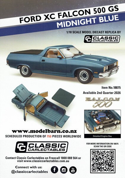 Classic Carlectables 1/18 Ford XC Ute Model Car A4 Shop Poster. This is an original poster sent to retail shops to advertise the upcoming 1/18 Ford XC Ute car, 18875. This is a used item in excellent condition but may have some marks & other imperfections. Only 1 available. This poster is 210mm wide & 297mm high & is 1 glossy page.
