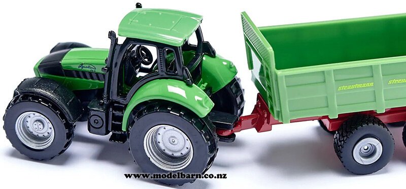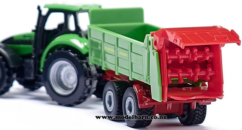 Deutz-Fahr Agrotron 265 Tractor with Strautman Streublitz Manure Spreader Set. Made by Siku. This set is 162mm long, 35mm wide & 45mm high.