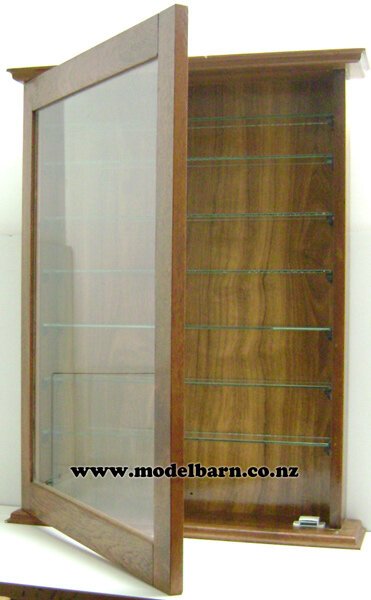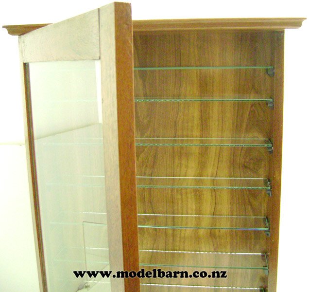Wooden Display Cabinet. Made by collector to display his collection. This wooden display cabinet has one opening door, 7 glass shelves, but is not lockable. This is a used item in very good condition but may have some imperfections. Only 1 available. This cabinet is 490mm wide, glass shelves are 65mm deep & 710mm high.
