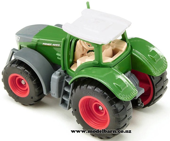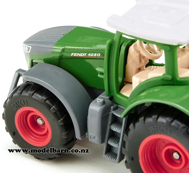 Fendt 1050 Vario Tractor. Made by Siku. Features removable cab, tow hook. Attaches to Siku implements. This tractor is 68mm long, 34mm wide & 41mm high.This item is not suitable for children under 5.