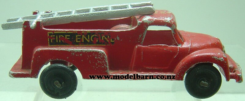 Fire Engine. Made of aluminium by McKenzie & Bannister in the 1960s & 70s under the brand of Jumbo Toys. This is a used item in good original playworn condition. It has a reproduction ladder. There does not appear to be any cracks, breaks or pieces missing. Only 1 available. This fire engine is 160mm long, 56mm wide & 60mm high.