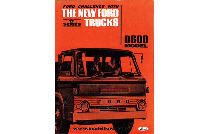 Ford D600 Truck Brochure. This is an original sales brochure printed in New Zealand. This brochure shows a picture of the Ford D600 on the front & specs on all other pages. This is a used item in very good condition but may have some imperfections. Only 1 available. This brochure is 210mm wide & 280mm high & is 4 pages.