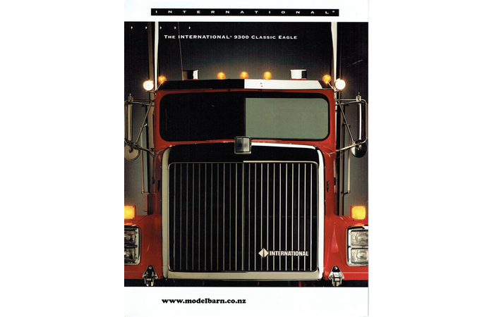 International 9300 Classic Eagle Truck Brochure. This is an original sales brochure printed in the United States. Inside this brochure are photos & specs of the International 9300 Classic Eagle. This is a used item in good condition but does have some marks. Only 1 available. This brochure is 215mm wide & 280mm high & is 4 pages.