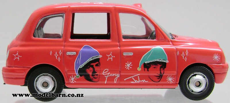 London Taxi Car. Made by Corgi in 2019 as part of their "The Beatles" series. Decorated in "Christmas" livery & features right-hand drive, nice detail. This is a used item in very good condition but may have small imperfections. Its box is in good condition but has marks & creases. Only 1 available. This vehicle is 125mm long, 47mm wide & 49mm high.This item is not suitable for children under 5.