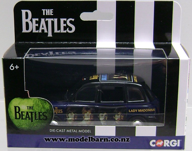 London Taxi Car. Made by Corgi in 2019 as part of their "The Beatles" series. Decorated in "Lady Madonna" livery & features right-hand drive, nice detail. This is a used item in very good condition but may have small imperfections. Its box is in good condition but has marks & creases. Only 1 available. This vehicle is 125mm long, 47mm wide & 49mm high.
