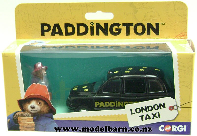 London Taxi Car. Made by Corgi. Decorated in "Paddington" livery & features right-hand drive, nice detail. This is a used item in very good condition but may have small imperfections. Its box is in good condition but has marks & creases. Only 1 available. This vehicle is 125mm long, 47mm wide & 49mm high.This item is not suitable for children under 5.